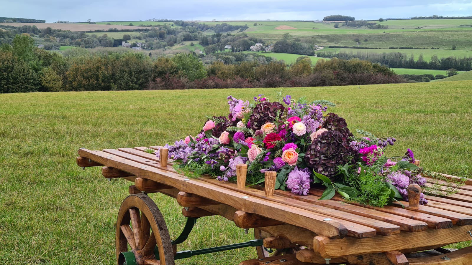 Julie Buckland is based in Compton Valence. She creates seasonal tributes including English garden flowers, hedgerow materials and surrounding nature. With an emphasis on incorporating memories of a loved one.